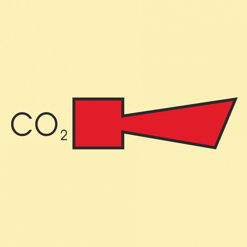 IMO3.8 Сирена предупреждающая о выпуске СО2. Размер: 150х150мм. Материал: Фотолюминесцентный пластик, фотолюминесцентная пленка