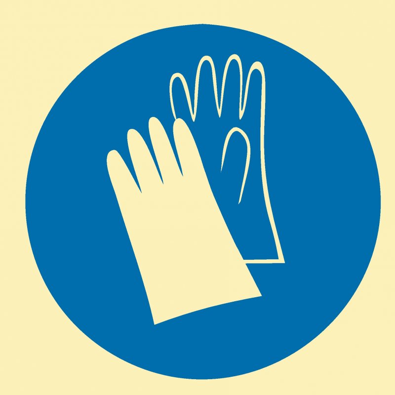 IMO4.2 Работать в защитных перчатках. Размер: 150х150мм. Материал: Фотолюминесцентный пластик, фотолюминесцентная пленка