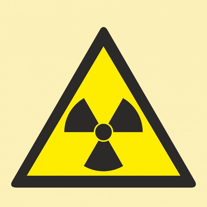 IMO5.1 Осторожно! Радиоактивные вещества. Размер: 150х150мм. Материал: Фотолюминесцентный пластик, фотолюминесцентная пленка