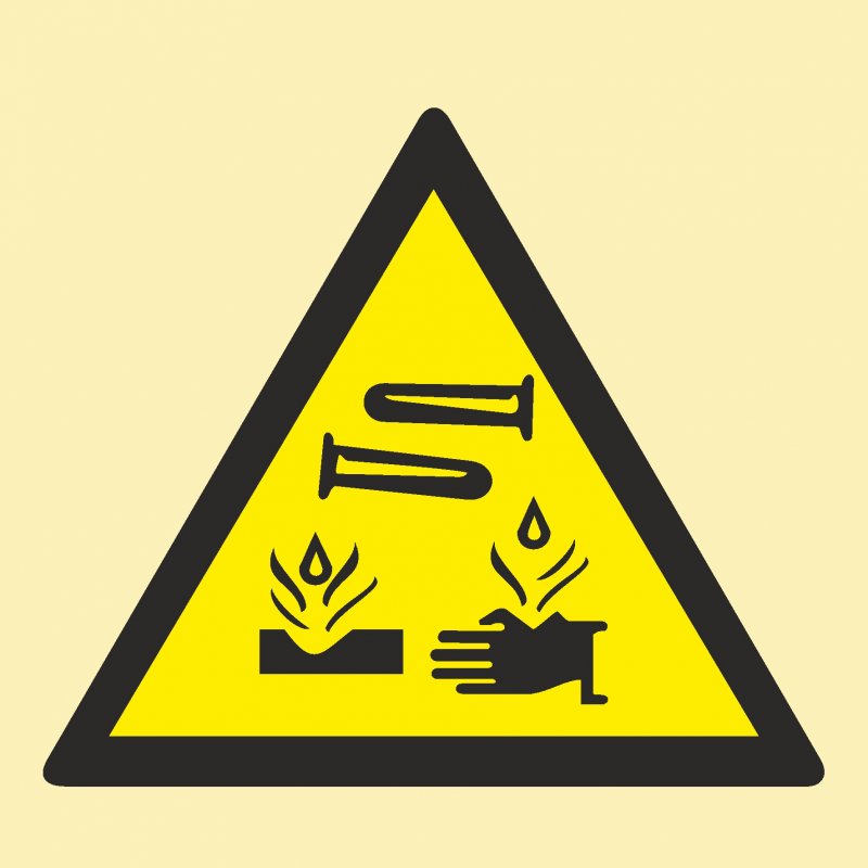 IMO5.3 Осторожно! Едкие вещества. Размер: 150х150мм. Материал: Фотолюминесцентный пластик, фотолюминесцентная пленка