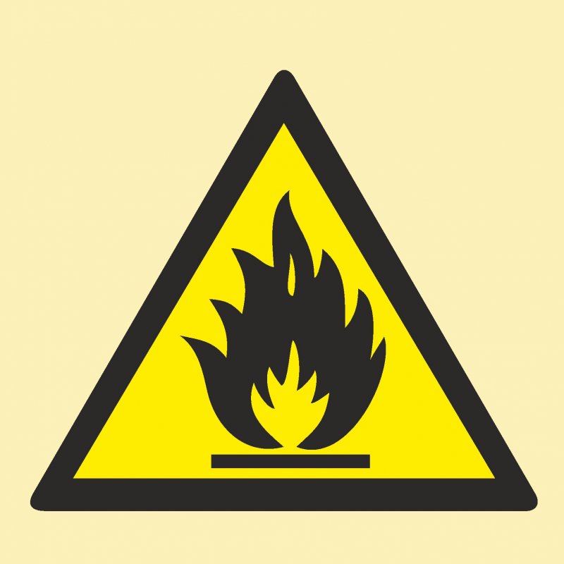 IMO5.6 Осторожно! Легковоспламеняющиеся вещества. Размер: 150х150мм. Материал: Фотолюминесцентный пластик, фотолюминесцентная пленка