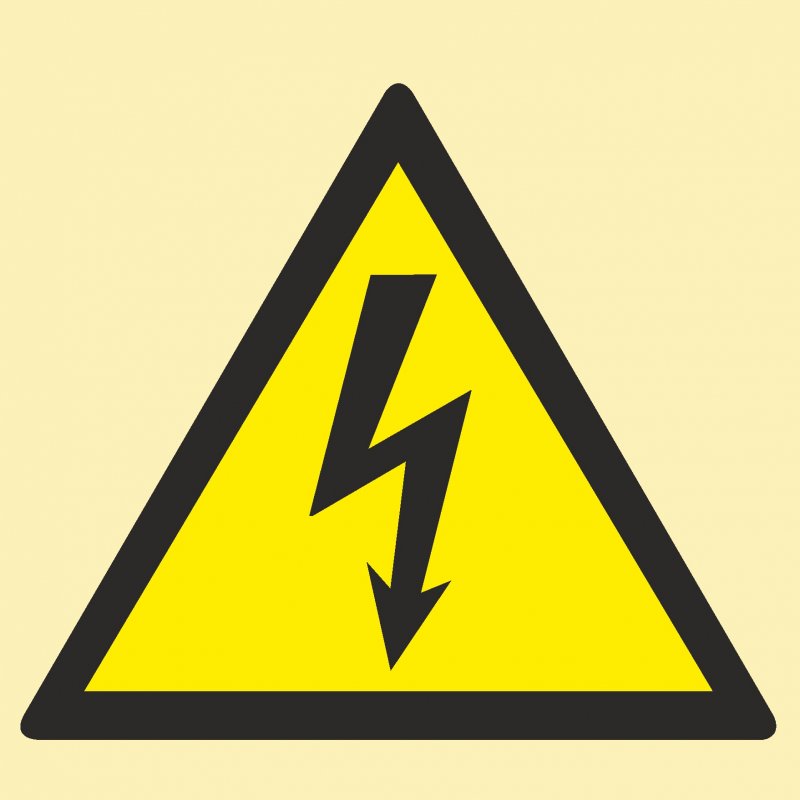 IMO5.9 Осторожно! Электрическое напряжение. Размер: 150х150мм. Материал: Фотолюминесцентный пластик, фотолюминесцентная пленка