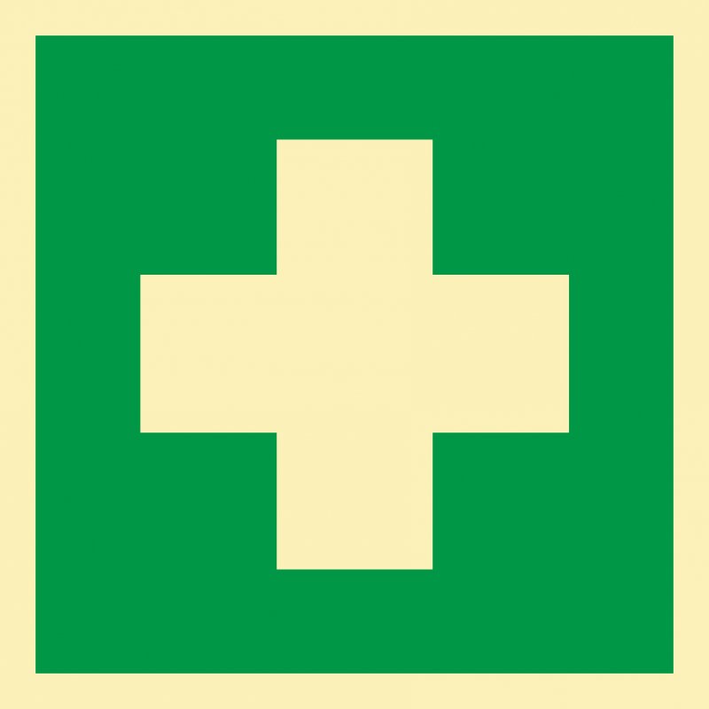 IMO7.3 Аптечка первой медицинской помощи. Размер: 150х150мм. Материал: Фотолюминесцентный пластик, фотолюминесцентная пленка