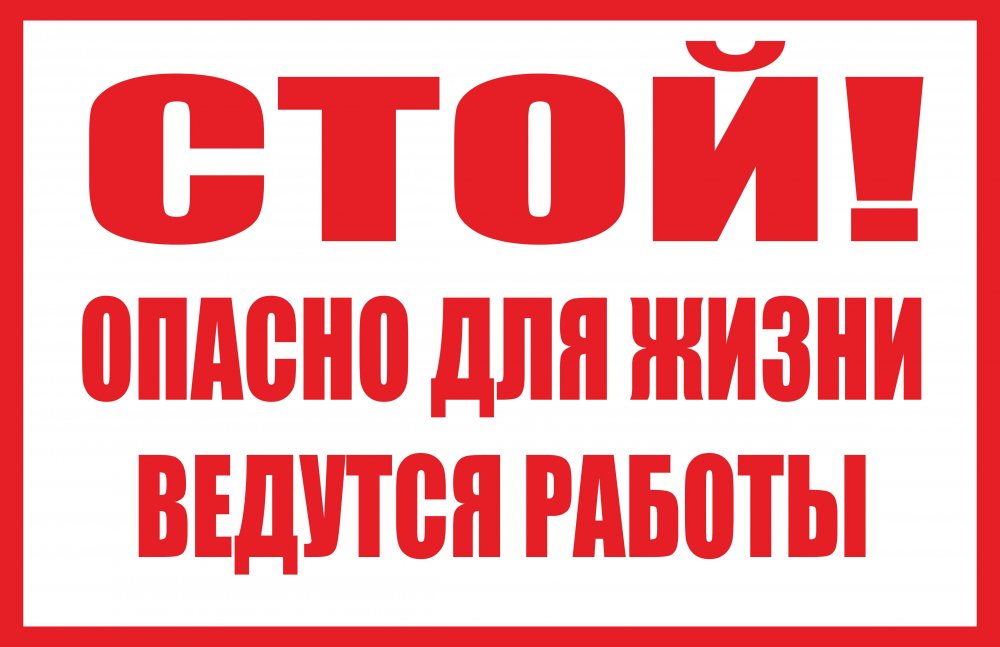 Табличка «Стой! Опасно для жизни. Ведутся работы» указывает на соблюдение осторожности.